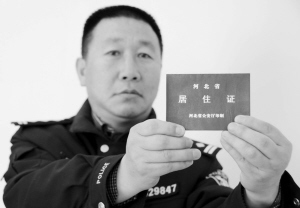 民警展示河北省居住证样本。